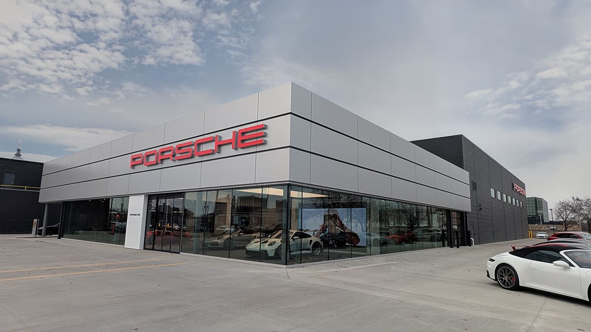 Located at the corner of N. 2nd and E. Madison, the 21,000‑square‑foot Porsche Center features a panoramic glass showroom anchored by a 180‑inch LED video wall, an expanded 10‑bay service department engineered for faster and more efficient Porsche care, and an elevated hospitality environment designed to deliver a more seamless, personal, and engaging ownership experience.